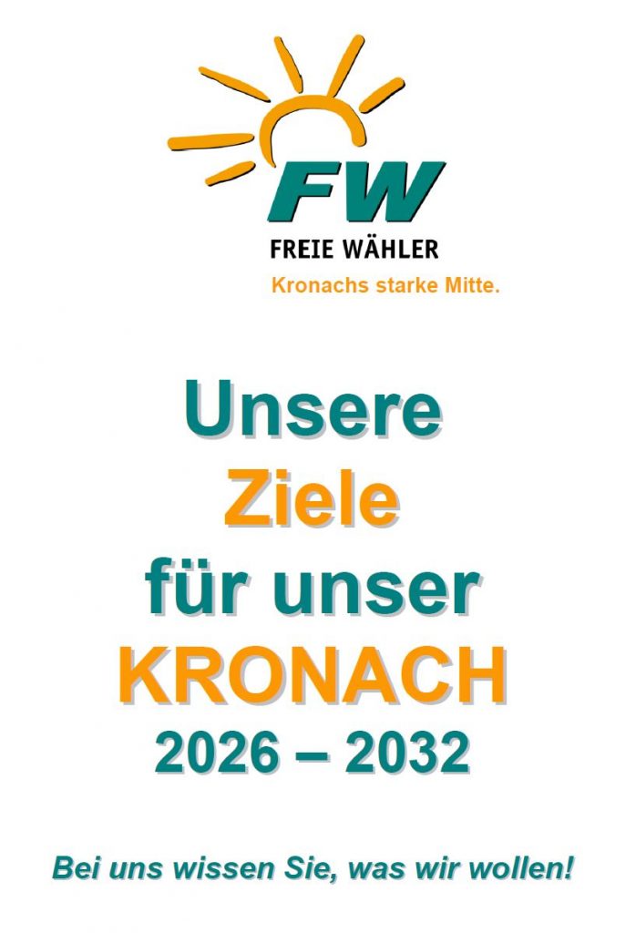 Wir stehen für eine klare, lösungsorientierte Kommunalpolitik: anpacken, gestalten und umsetzen. Für die Weiterentwicklung unserer Stadt bringen wir konkrete Ideen und realistische Konzepte ein und setzen auf eine Umsetzung mit Augenmaß und Verantwortungsbewusstsein. Die genannten Projekte sind wichtige Schritte nach vorne – gleichzeitig aber nur einzelne Bausteine eines umfassenden Zukunftsplans für Kronach. Unser Ziel ist es, notwendige Veränderungen entschlossen voranzubringen und unsere Stadt nachhaltig zu stärken.